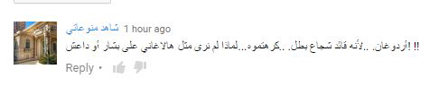 وقال آخر : " أردوغان. ..لأنه قائد شجاع بطل. ..كرهتموه...لماذا لم نرى مثل هالاغاني على بشار أو داعش".